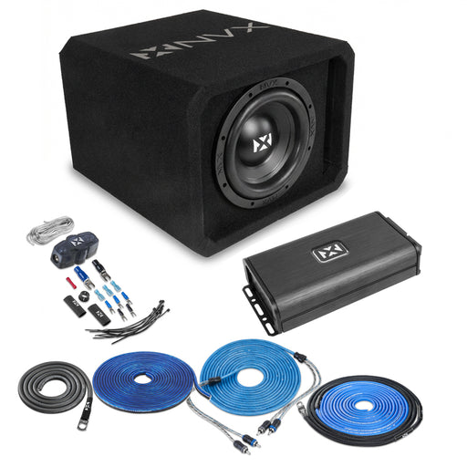 NVX Single 8" Complete Bass System w/ Ported Box, Amp, and Wiring Kit