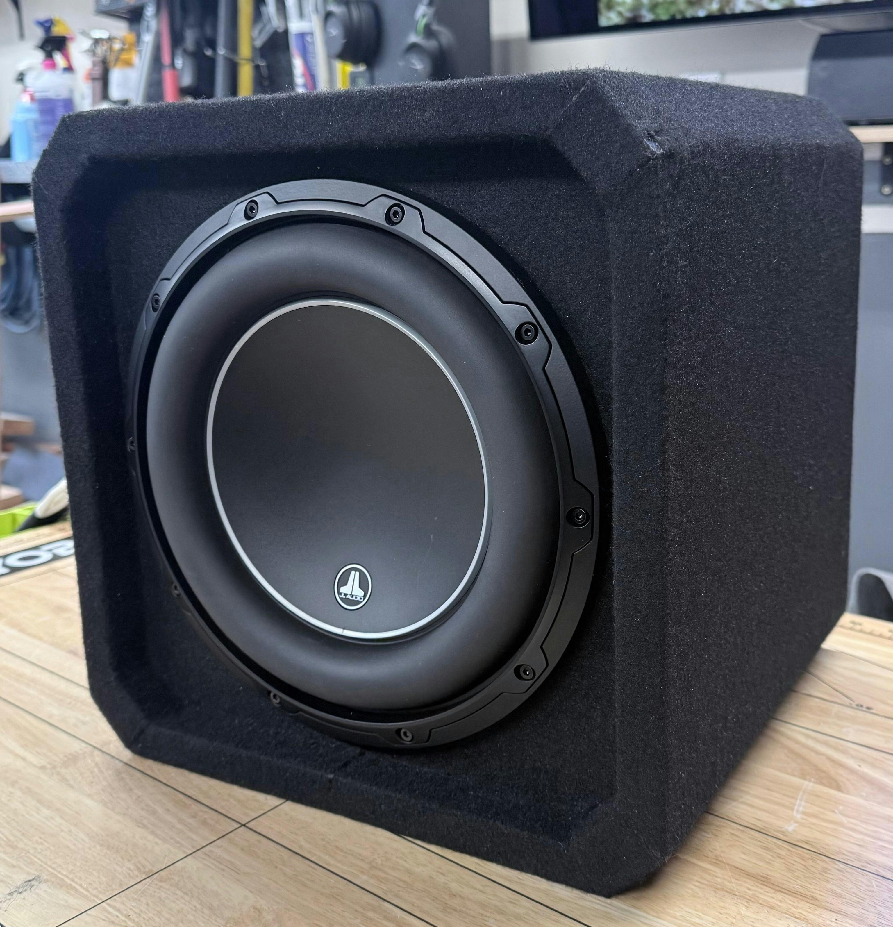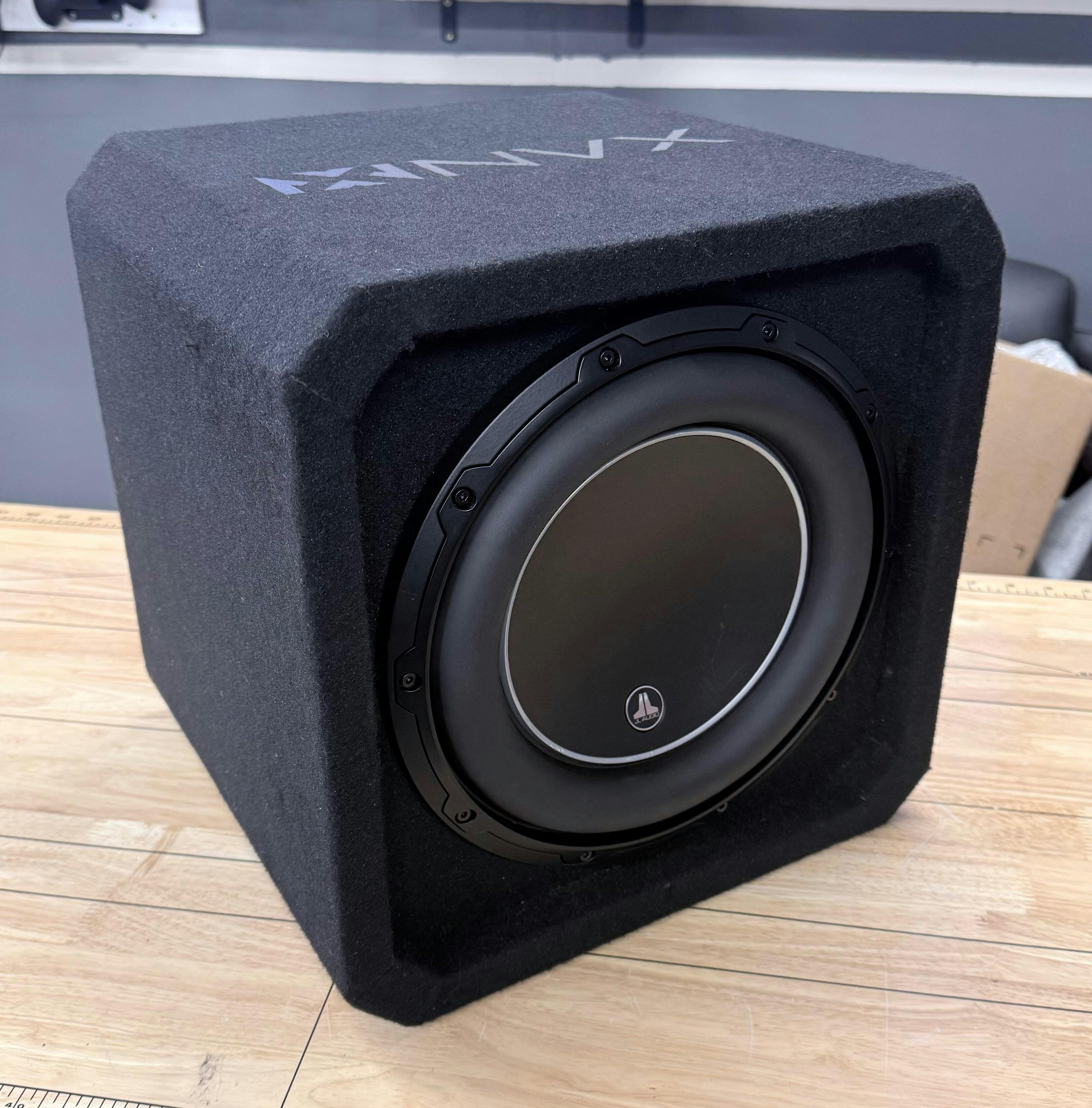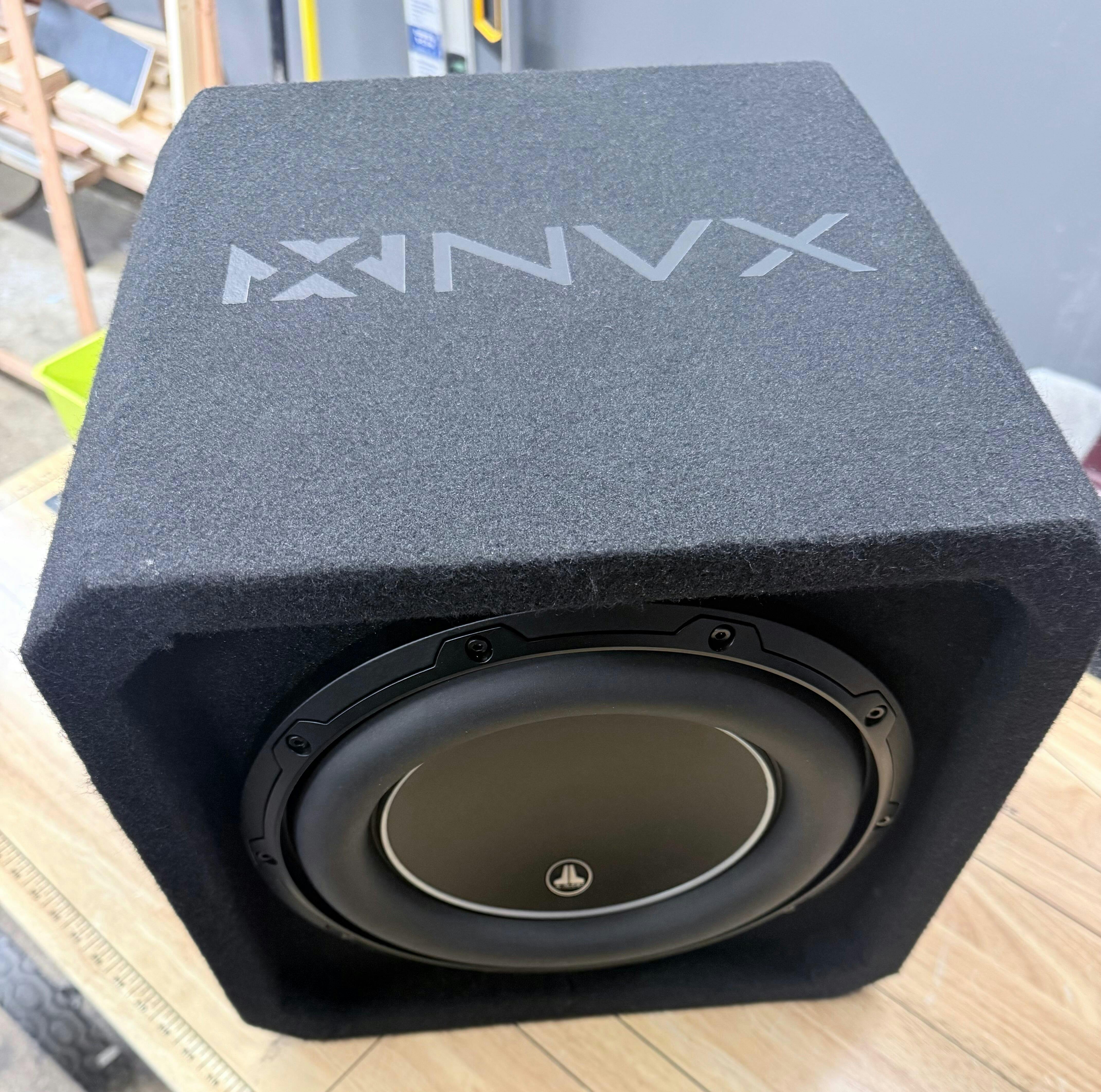 NE101S Single 10" Sealed 3/4" MDF Black Carpeted Subwoofer Enclosure – 0.65 Cu. Ft. with Polyfil and NVX Logo